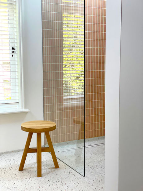 De oplossing? Het doorbreken van een aanliggende kamer! Deze kreeg de functie van inloopkast met daarachter een badkamer gevuld met daglicht. De materialen en kleuren zijn verfrissend, clean en creëren heerlijke rust. Voor een ideale start van de dag.